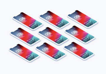 图穷联素材库 » iPhone X Clay Isometric - Left 苹果白模等距透视角度 APP手机网页贴图展示PSD样...