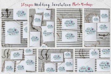 条纹风格婚礼设计物料样机模板 Stripes Wedding Invitation Mockups