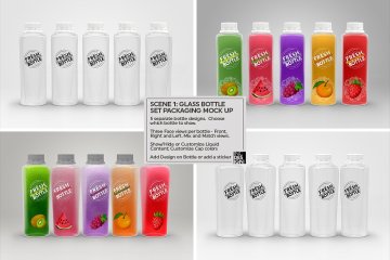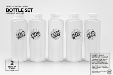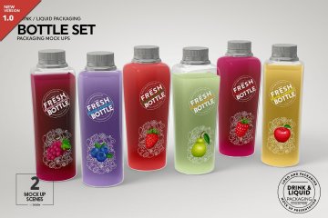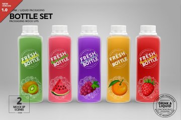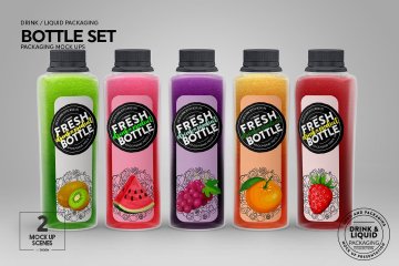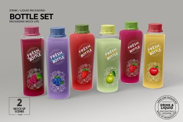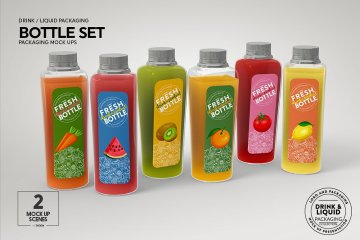 果汁瓶包装外观设计样机模板 Juice Bottle Set Packaging MockUp