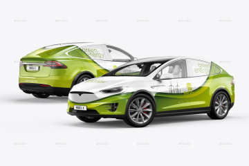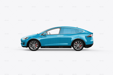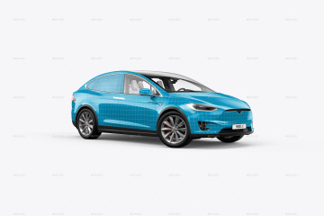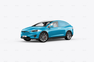特斯拉汽车多角度场景展示样机贴图PSD模版 Tesla Model X Electric Car Mockup