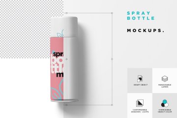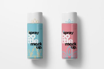 逼真的空气清新剂防晒喷雾瓶外观Bottle Mockups