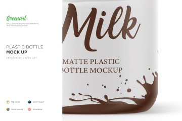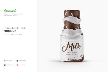 哑光塑料牛奶瓶样机Matte Plastic Bottle Mockup
