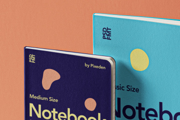 图穷联素材库 » 高质量悬空的笔记本书籍样机贴图展示模板 Gravity Psd Notebook Set Mockup