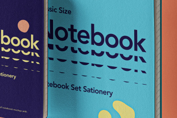 高质量悬空的笔记本书籍样机贴图展示模板 Gravity Psd Notebook Set Mockup