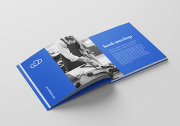 图穷联素材库 » 方形书籍封面内页设计贴图展示样机PSD模板 Square book mockup