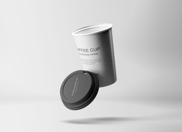 悬空漂浮的咖啡杯包装设计品牌提案样机模板素材 Flying Coffee Cup Mockup
