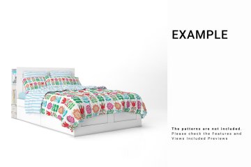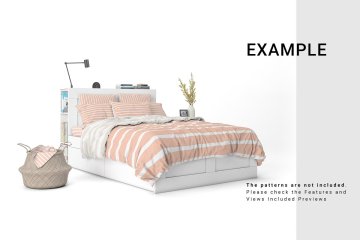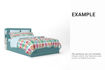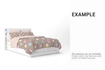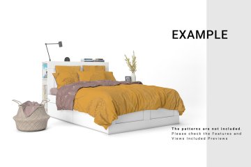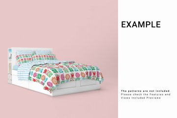 床品花纹设计展示样机Bed Linens Mockup