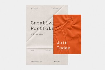 真实褶皱感觉的海报设计展示样机Fold Paper
