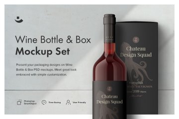 高贵的葡萄酒瓶样机套装Essential Wine Bottle