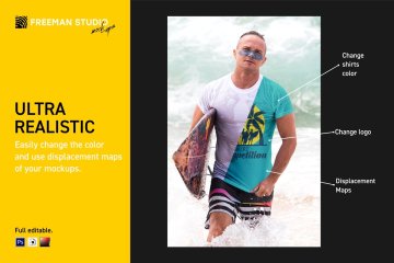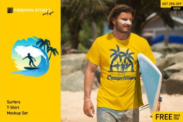 图穷联素材库 » 夏日海洋冲浪者时尚T恤样机模板Surfers T-Shirt Mock