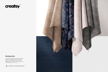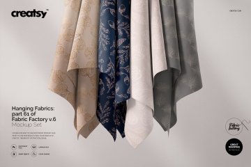 图穷联素材库 » 挂起来的面料图案花样设计设计展示样机Hanging Fabrics Mockup