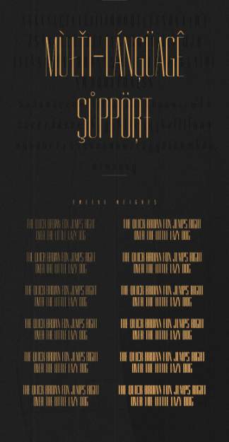 Gorgeous Family Free Demo is a display sans-serif condensed type-family with 12 weights. Here you can have it from Regular, Medium, Bold, Thin, and Light to Heavy. Each font contains 385 glyphs which include small letters and capitals. In addition, this family also comes with numbers, punctuation & accents. With the combination of its weights, these typefaces will be great to give your design the eye-catching and contemporary touch. Hence, this family is ideal for magazine, advertising, fashion branding and logo as well.