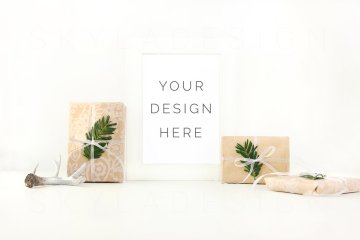 圣诞礼物包装照片样机模型 Christmas present stock