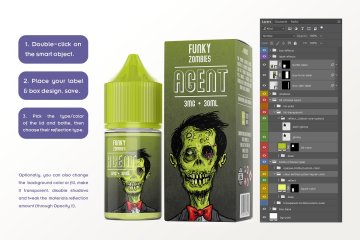 电子液体果汁瓶子和盖子样机eLiquid Bottle Mockup