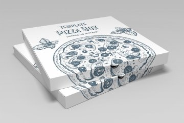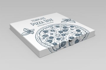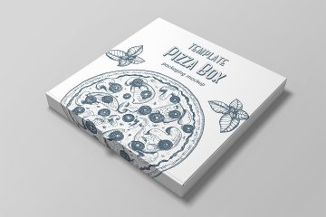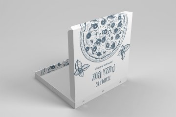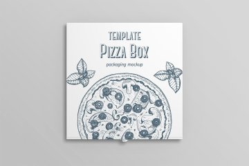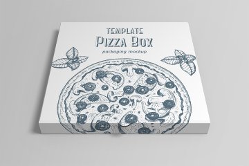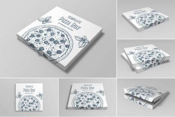 精致的食品包装青花瓷色披萨盒子PIZZA BOX MOCKUP