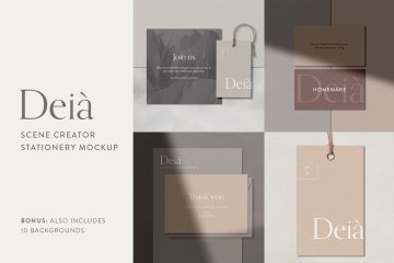图穷联素材库 » 极简主义Deia平面文具样机 Deia Stationery Mockup Scene Creator