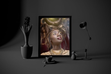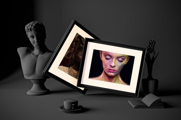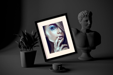 图穷联素材库 » 黑色质感的时尚高端海报相框样机dark-frames-in-studio