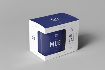 蓝白马克杯杯子包装盒Mug amp;amp; Box Mock-up