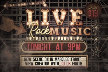 图穷联素材库 » 高端大气震撼的工业颓废质感的VI样机marquee-front-view-color-fonts
