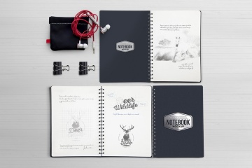 图穷联素材库 » 4个带有可移动元素的笔记本日记本notebook-mockups