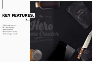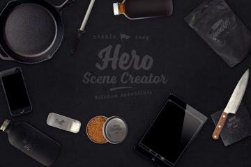 厨房用品设备项目预制场景Hero Kitchen Essentials Mockup Creator