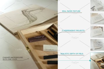 木炭和素描绘画展示样机 Charcoal Sketch Mockup