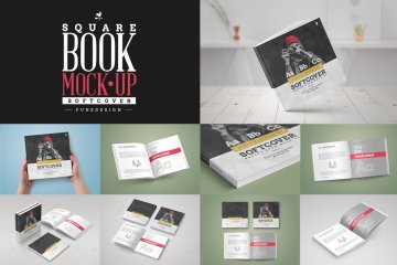 方形平装书设计样机 Square Softcover Book Mock-Up