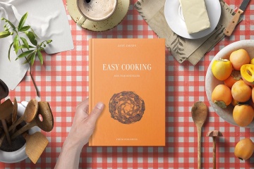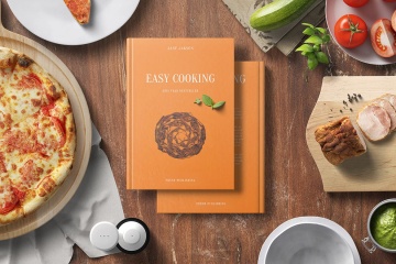 高品质的厨房场景书籍装帧VI样机展示模型cook-book-mockup-kitchen