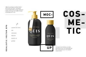高品质的化妆品瓶子矢量样机Cosmetic_Vector_Mockup_Black_Bottle