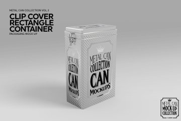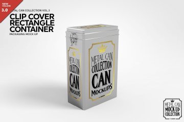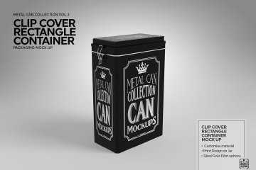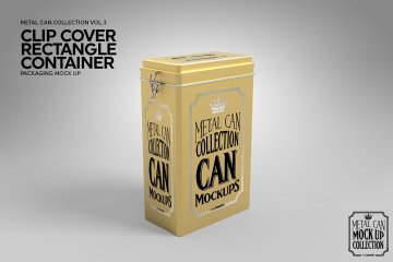矩形盒子铁盒容器包装盒样机展示ClipCover Rectangle Container MockUp