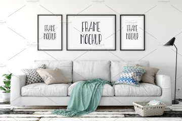 室内沙发画框样机 Scandi Interior Frame Mockup