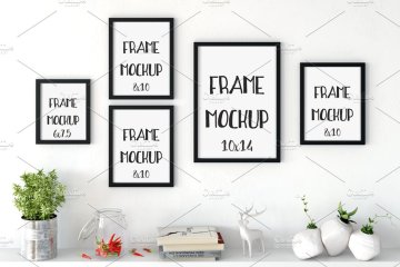 室内时尚黑边画框样机 Interior Frames Mockup in white