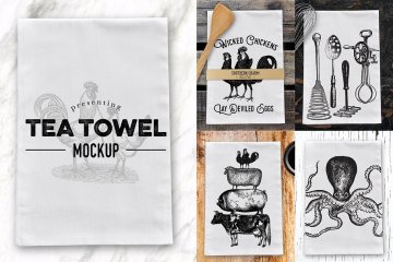 图穷联素材库 » 茶具设计展示样机 Tea Dish Towel Mockup