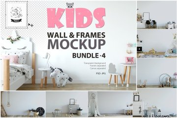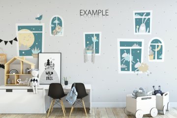 儿童抢面和画框相关设计样机合集4 KIDS WALL amp;amp; FRAMES