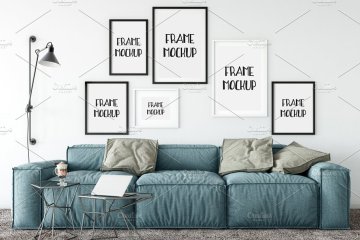 室内环境的画框样机 Scandi Interior Frame Mockup