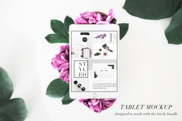 图穷联素材库 » 在花卉上优雅的iPad内容设计展示样机 PSD Tablet Mockup