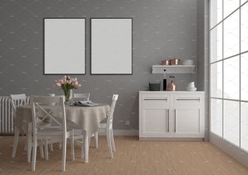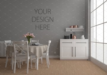 室内展示模型之老式餐厅厨房 Interior mockup – vintage