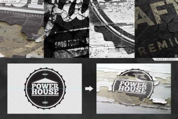 图穷联素材库 » 经典的有裂痕的logo设计展示样机 Vintage Logo Mock-ups