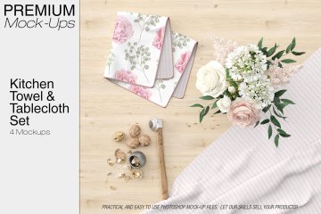 毛巾的展示样机Mockups下载 Kitchen Towel amp;amp; Tablecloth