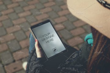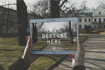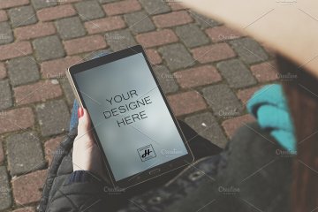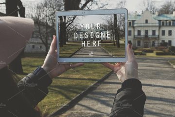 图穷联素材库 » 室外场景的平板电脑UI设计展示样机 8 photo mock-ups
