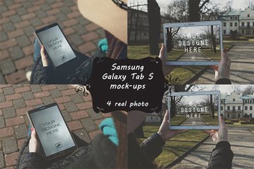 室外场景的平板电脑UI设计展示样机 8 photo mock-ups