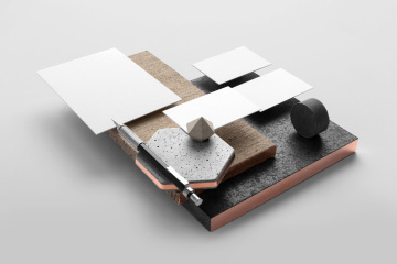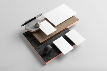 图穷联素材库 » 高逼格工业风混凝土花岗岩元素品牌VI贴图样机模板 Geometria - Branding Mockup