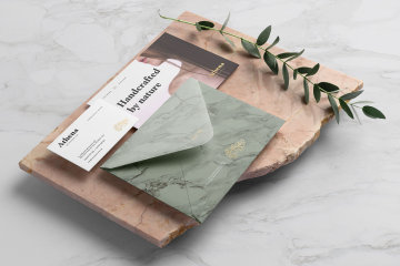 图穷联素材库 » 雅典娜花卉大理石元素品牌VI贴图样机PSD模版素材 Athena - Branding Mockup