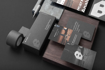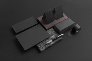 图穷联素材库 » 哑光暗黑系木质花岗岩品牌样机PSD模版素材 Blackstone - Branding Mockup
