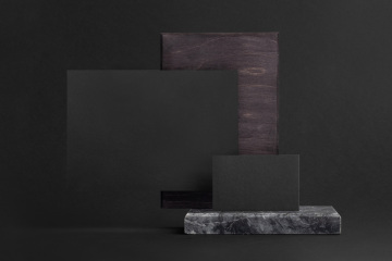 哑光暗黑系木质花岗岩品牌样机PSD模版素材 Blackstone - Branding Mockup