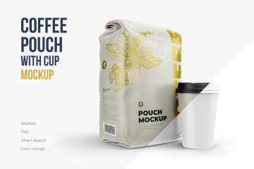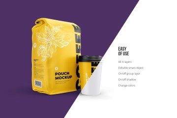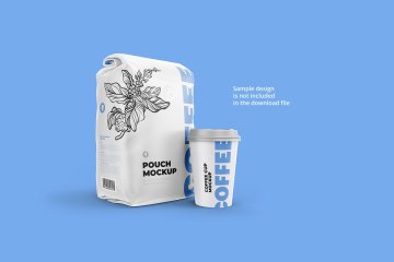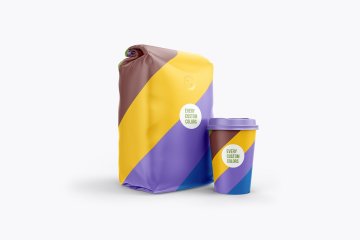 咖啡杯咖啡袋包装设计侧视图样机模板