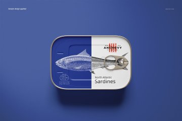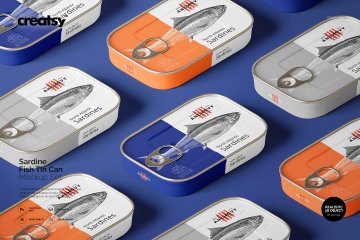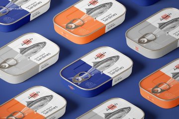 沙丁鱼品牌罐头包装设计展示样机素材下载[PSD]