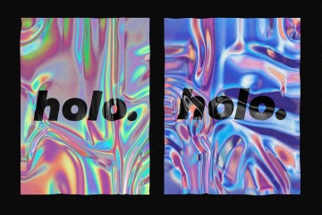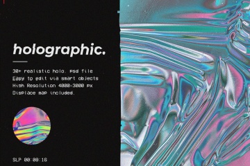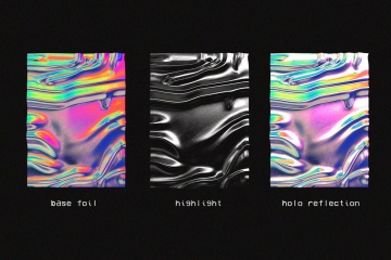 图穷联素材库 » 时尚绚丽多彩全息铝箔质感的背景叠加纹理样机展示模型