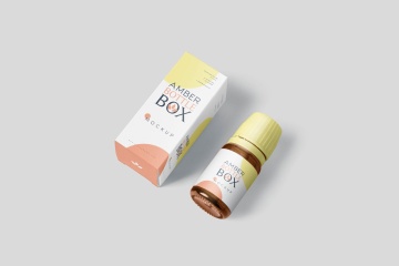 药物瓶amp;amp;包装纸盒设计图样机模板 Amber Bottle Box Mockup Set
