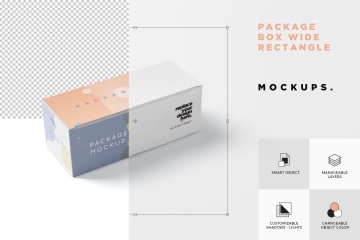宽矩形包装盒外观设计效果图样机 Package Box Mock-Up Set – Wide